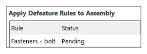 在将 Defeature 规则应用于装配体下,规则状态为待处理。
